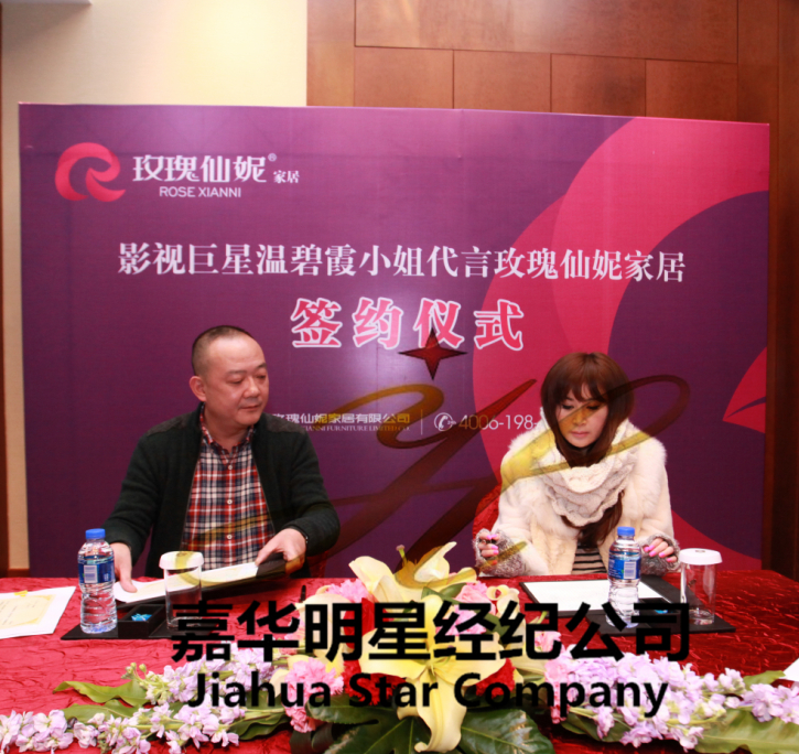 2014年2月19日,玫瑰仙妮家居有限公司通過嘉華明星經(jīng)紀(jì)公司聘請香港影視巨星溫碧霞擔(dān)任其旗下玫瑰仙妮品牌形象大使,簽約儀式在深圳福田香格里拉舉行。