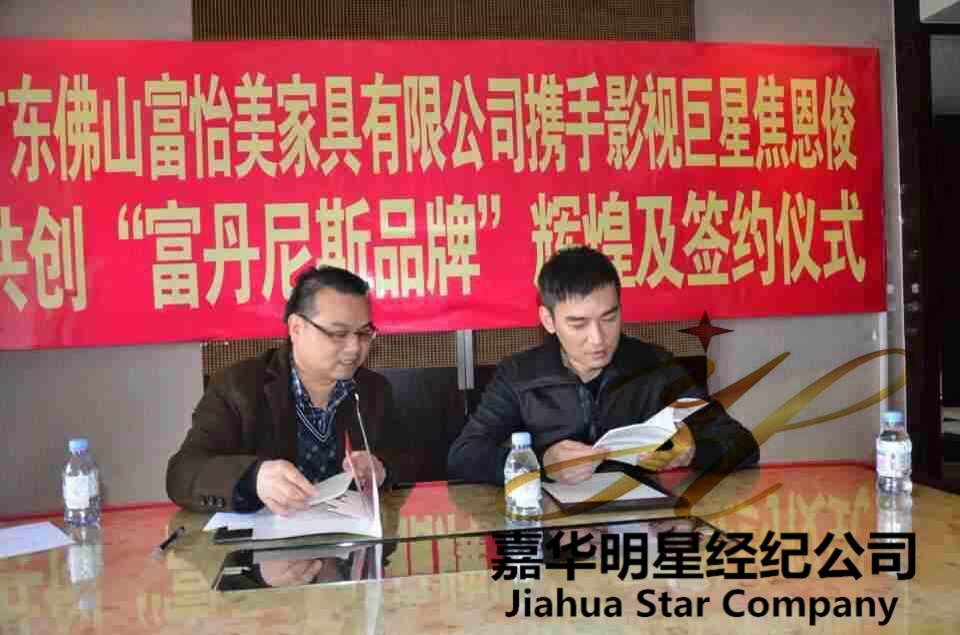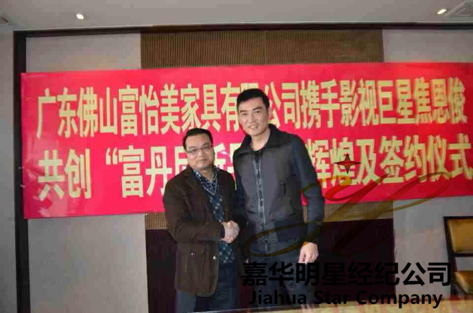 2014年3月1日,嘉華明星經(jīng)紀(jì)公司經(jīng)紀(jì)人、佛山富怡美家具有限公司導(dǎo)班子一行抵達(dá)徐州開元名都大酒店,簽約影視巨星焦恩俊擔(dān)任其旗下品牌富丹尼沙發(fā)形象大使。