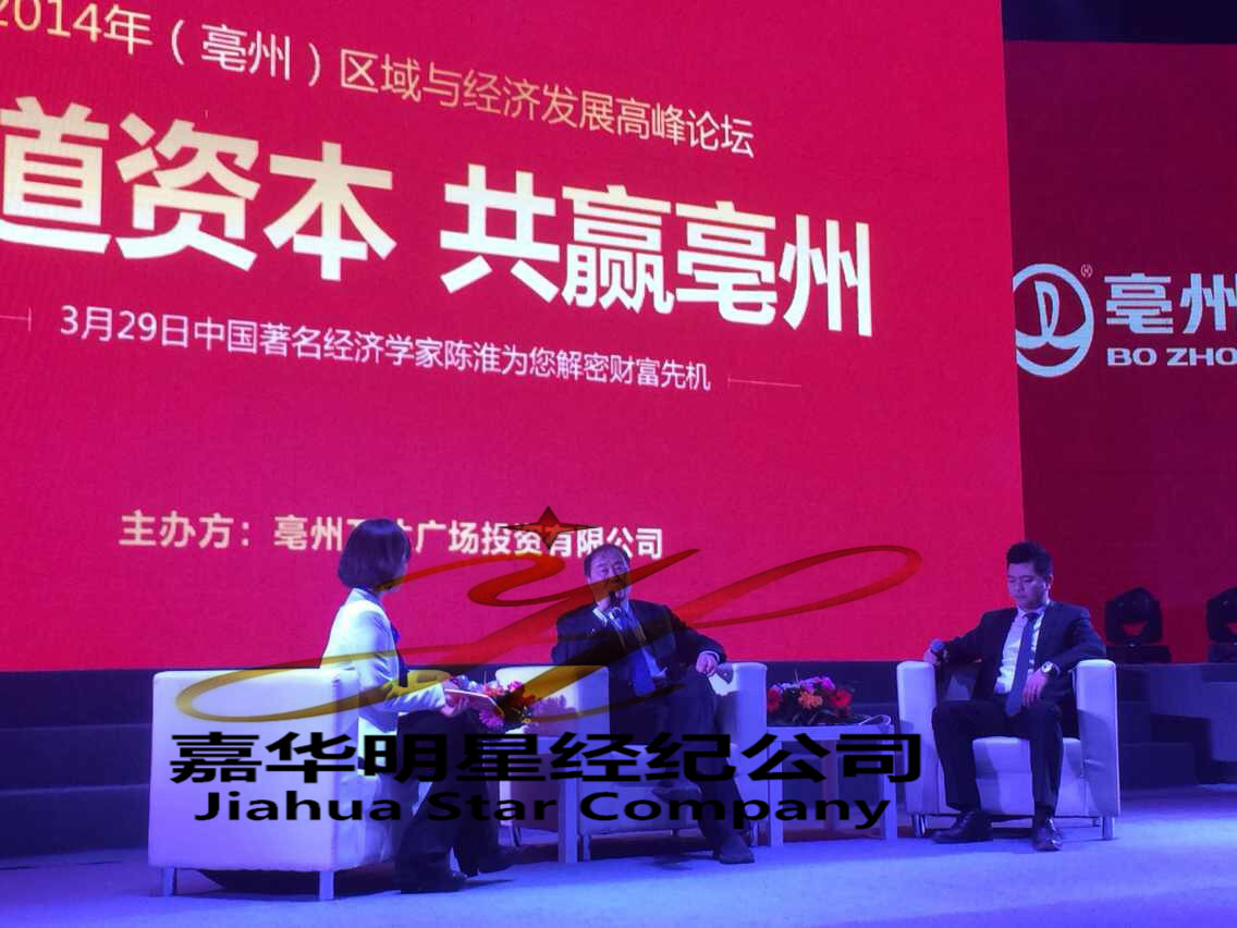 3月29日,亳州萬達通過嘉華明星經(jīng)紀公司邀請著名經(jīng)濟學家陳淮出席2014年亳州區(qū)域與經(jīng)濟發(fā)展高峰論壇。