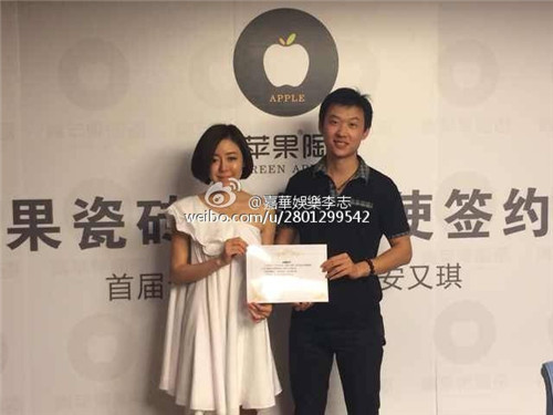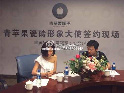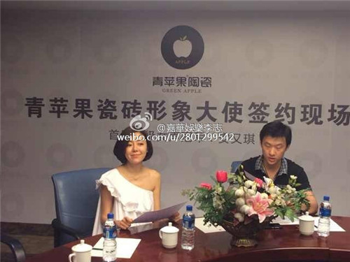 8月10日下午,嘉華明星經紀公司攜超女首屆冠軍安又琪抵達北京京瑞大廈18層第五會議室。出席青蘋果陶瓷形象大使簽約儀式。