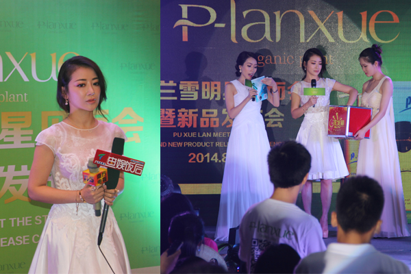 經(jīng)過嘉華明星經(jīng)紀(jì)公司和深圳菩蘭雪唐總洽談,最終決定邀請玉女歌手陶鈺玉、陳紫函出席其舉辦的新品發(fā)布會,8/28晚 菩蘭雪和嘉華明星經(jīng)紀(jì)公司李志對接,安排商務(wù)車分別接陳紫函、陶鈺玉入住深圳蛇口希爾頓南海酒店。8月29日下午,陳紫函、陶鈺玉準(zhǔn)時抵達(dá)維也納酒店,出席菩蘭雪舉辦的明星見面會暨新品發(fā)布會?,F(xiàn)場,陶鈺玉熱情洋溢的獻(xiàn)唱三首歌,給現(xiàn)場觀眾和粉絲贈送其新出的簽名專輯和海報。陳紫函帶來一首歌曲,并和菩蘭雪唐總等領(lǐng)導(dǎo)一起按啟動球,標(biāo)志菩蘭雪新產(chǎn)品正式上市。會后,陳紫函接收媒體采訪,感謝菩蘭雪的盛情邀請的同事,也說了用過菩蘭雪產(chǎn)品后的感受。