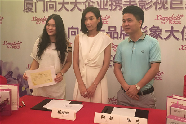經(jīng)過嘉華明星經(jīng)紀(jì)公司與廈門向大大企業(yè)向總的深入洽談,根據(jù)向大大品牌的市場定位和企業(yè)文化,最終達(dá)成共識,聘請香港藝人楊恭如擔(dān)任向大大品牌形象代言人,于7月11日在北京中國大飯店舉行簽約儀式。楊恭如自2000年開始赴內(nèi)地發(fā)展,隨后主演了《大醉俠》、《我的兄弟姐妹》、《大漢風(fēng)》、《風(fēng)吹云動星不動》、《浴火鳳凰》、《唐宮燕》…等劇。2005年被授聘為上海市預(yù)防艾滋病宣傳大使。2014年擔(dān)任〝愛心包裹項目〞愛心大使,并登上2014中國慈善名人榜,獲得中國慈善名人獎公益典范獎。 2015年推出首本個人心靈主題隨筆─《我和斐濟(jì)有個約會》 與首張個人單曲─《如此美好》。我們相信向大大企業(yè)有楊恭如的加入,定能帶來更高的關(guān)注度與銷售爆點(diǎn)。