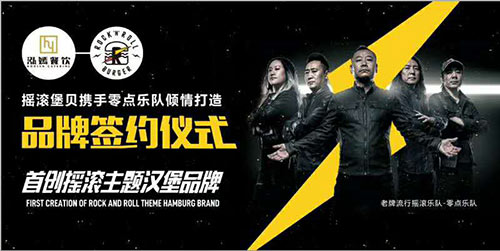 6月15日,搖滾堡貝攜手零點樂隊品牌簽約儀式,首創(chuàng)搖滾主題漢堡品牌。