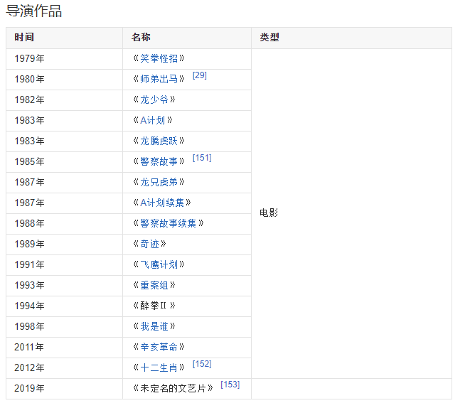 代表作品:《笑拳怪招》《醉拳》系列《警察故事》系列 《紅番區(qū)》《我是誰》《A計劃》系列 《雙龍會》《尖峰時刻》系列 《寶貝計劃》《大兵小將》《神話》 《功夫夢》 《鄰家特工》《功夫之王》等等!